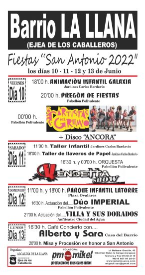 FIESTAS DE SAN ANTONIO EN LA LLANA Publicado el 5 junio, 202214 junio, 2022 por mikel música en Sin categoría Compártelo: Haz clic para compartir en X (Se abre en una ventana nueva) X Haz clic para compartir en Facebook (Se abre en una ventana nueva) Facebook Me gusta Cargando... Relacionado