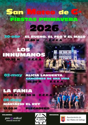 FIESTAS DE PRIMAVERA SAN MATEO DE Gº Publicado el 28 abril, 2026 por mikel música en Sin categoría Compártelo: Compartir en X (Se abre en una ventana nueva) X Comparte en Facebook (Se abre en una ventana nueva) Facebook Me gusta Cargando... Relacionado